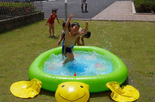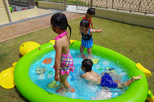 睦の家:園庭でのプール遊び
