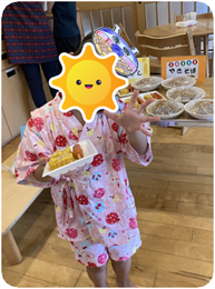 25日 8月 2025 くれよん:楽しい夏祭り♡ 令和7年8月20日(水) 今年もみんなで 夏祭りをしました。 ヨーヨー釣りやお面作りで 楽しみました。 お昼ご飯は夏祭りメニューで、 好きな物をたくさん食べました。 特にかき氷は大興奮でした。 また来年も出来たらいいね。 谷垣 tagPlaceholderカテゴリ: